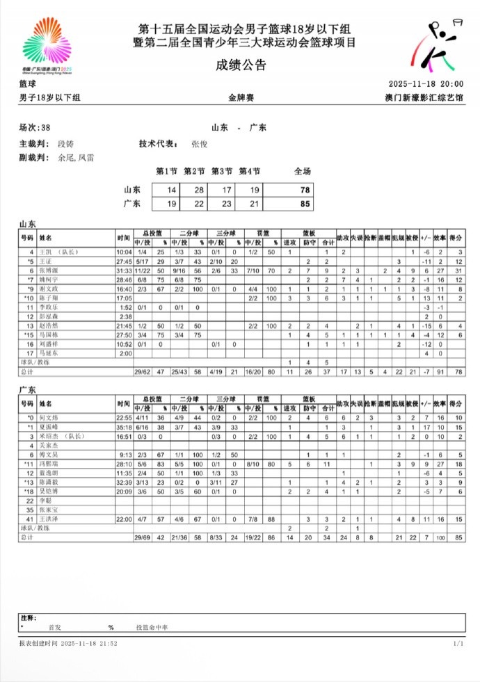 恭喜广东U18全运男篮勇夺桂冠!用胜利延续了南 时间: 2025-11-19 来源: 网络 作者: admin 上一篇:广东U18全运男篮夺冠!缔造了全运会青年篮球赛 下一篇:全运男篮U18组最终排名:广东队第一 山东队第二