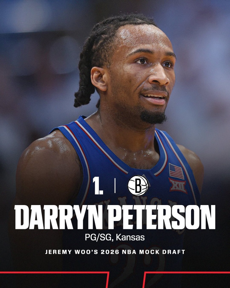 ESPN2026年NBA模拟选秀前五!彼得森状元被篮网选中