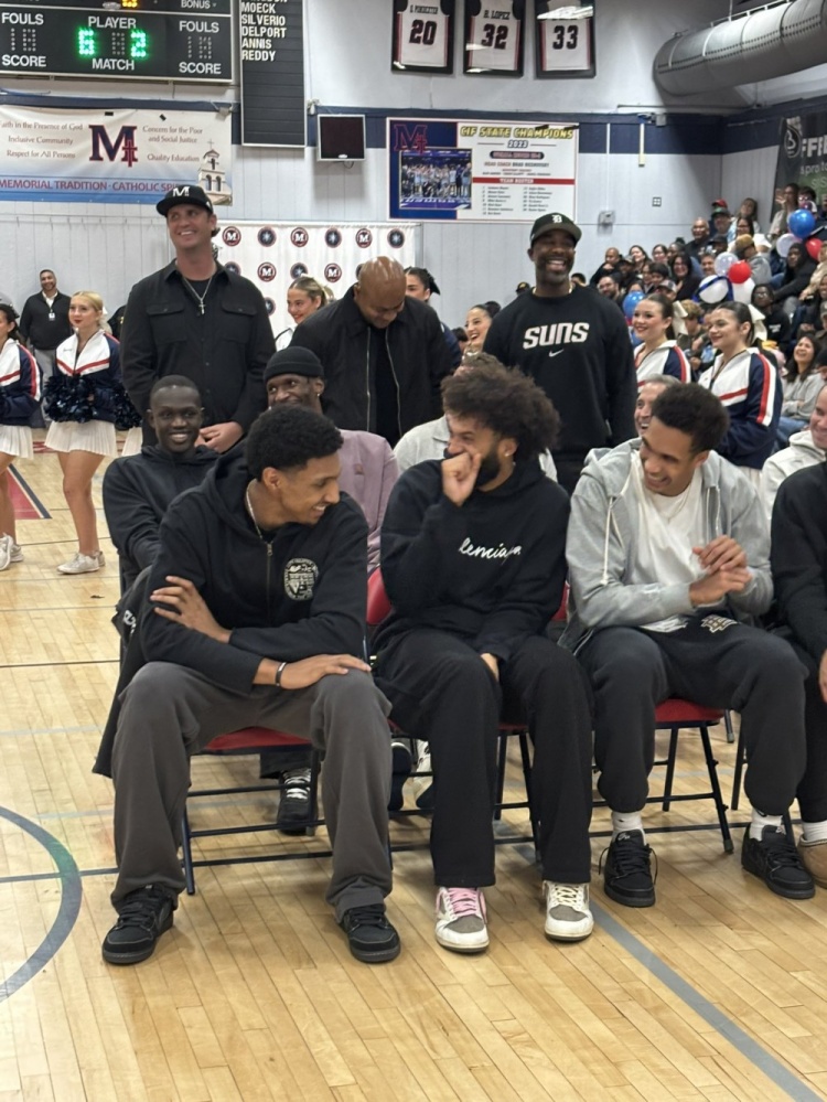 足球比分网11月21日讯 昨日,太阳后卫杰伦·格林的高中球衣退役仪式在圣华金纪念高中举行。 太阳主教练乔丹·奥特和多位新队友都来到现场,支持杰伦·格林。