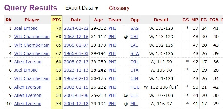 马克西54分并列队史单场得分榜第9 仅恩比德张伯