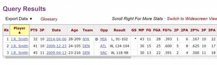 JR·史密斯(3次) JR职业生涯3次单场10+三分,其中包括一场11记三分,09年4月对阵国王,他22投13中,三分18投11中,砍下45分。