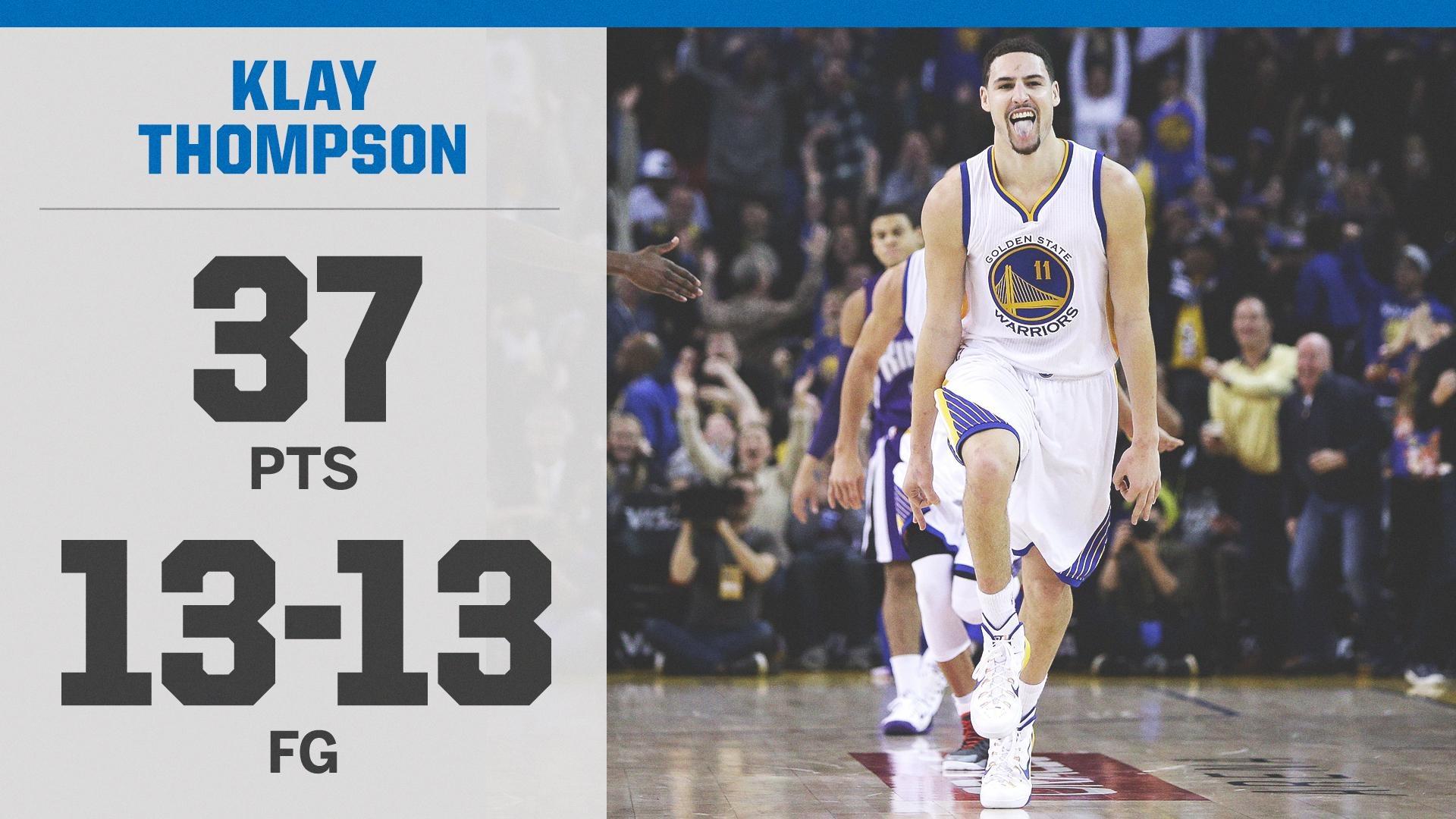 2015年1月24日,在勇士以126-101大胜国王的比赛中,克莱第三节爆砍37分,创下NBA历史纪录。这一节他打满12分钟,13投13中,三分9中9,罚球2中2。 全场比赛,克莱出战32分49秒,投篮25中16,三分15中11,罚球10中9,得到52分2篮板5助攻4抢断2盖帽。 NBA历史单节三分纪录保持者 在这场对阵国王的比赛中,克莱第三节三分9中9,这也是NBA历史单节三分纪录。 NBA历史单场三分纪录保持者 2018年10月30日,在勇士对阵公牛的比赛中,克莱射进14记三分,创下NBA历史单场三分纪录。 全场比赛克莱出战26分33秒,投篮29中18,三分24中14,罚球2中2,狂砍52分4篮板2抢断,勇士以149-124大胜。 G6汤 2016年5月29日,西决G6,勇士2比3落后无路可退,克莱此役天神下凡,全场31投14中,三分球18中11,罚球2中2,狂砍41分,将系列赛拖入抢七大战。 赛后,勇士队老板拉科布在球员通道跪谢克莱,这也成为经典一幕。