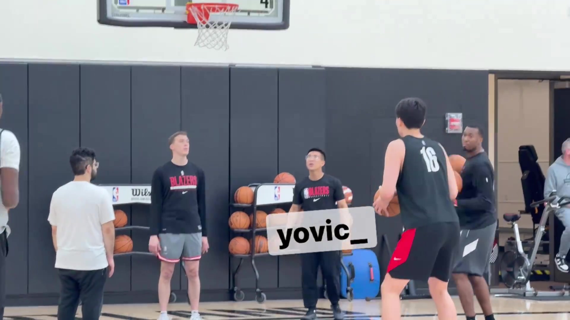 视频来自开拓者随队记者@yovic_ 据开拓者随队记者@yovic_报道,今天训练尾声时,杨瀚森和里斯还留在场上补了几组投篮。 在斯普利特接受采访的时候,杨瀚森又和两位助教一起,在我们身后加练了折返跑。 |