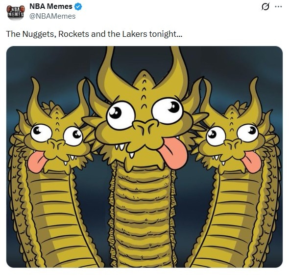 一起拉!美媒晒图调侃今日掘金&火箭&湖人表现: 时间: 2025-12-03 来源: 网络 作者: admin 上一篇:掘金主帅:若穆雷疼到休战那说明伤得不轻 希望 下一篇:西部2-5湖人+火箭+掘金+马刺都在输球
