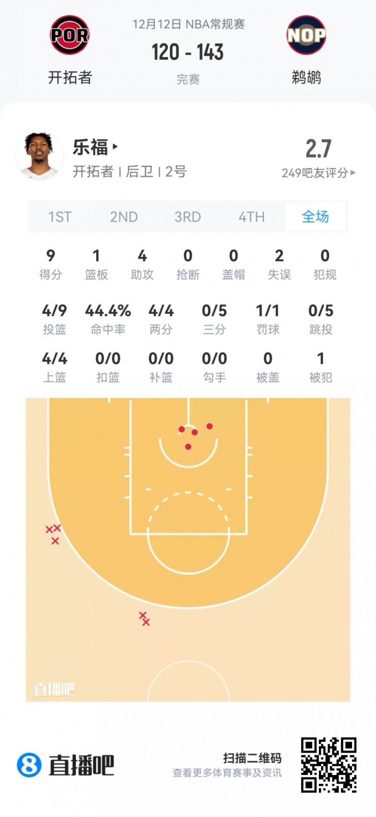 开拓者落选秀凯莱布·乐福 登场21.7分钟