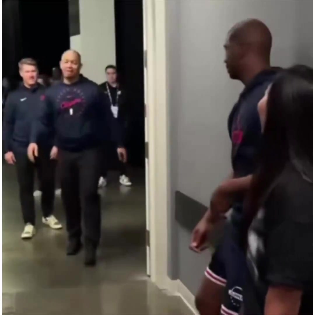 足球比分网12月7日讯 今天,多家美媒晒出视频,保罗正在和一个女性聊天,泰伦·卢走过来和后者拥抱一下。 而图中的女性疑似为Natalie Nakase,现任金州女武神主教练,她曾担任过快船...