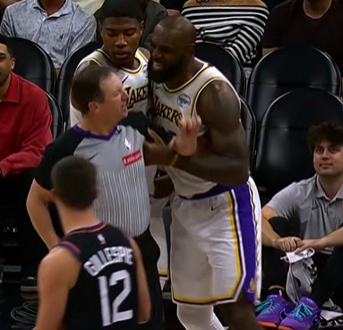 美媒解读詹姆斯唇语:“MD,这犯规太TM过分了,搞什么鬼啊。这明明是恶意的啊,TMD傻X裁判。我受够了你们这帮人的破事!” GIF-詹姆斯抓着裁判抱怨狄龙触球 GIF-八村塁紧紧抓着詹姆...