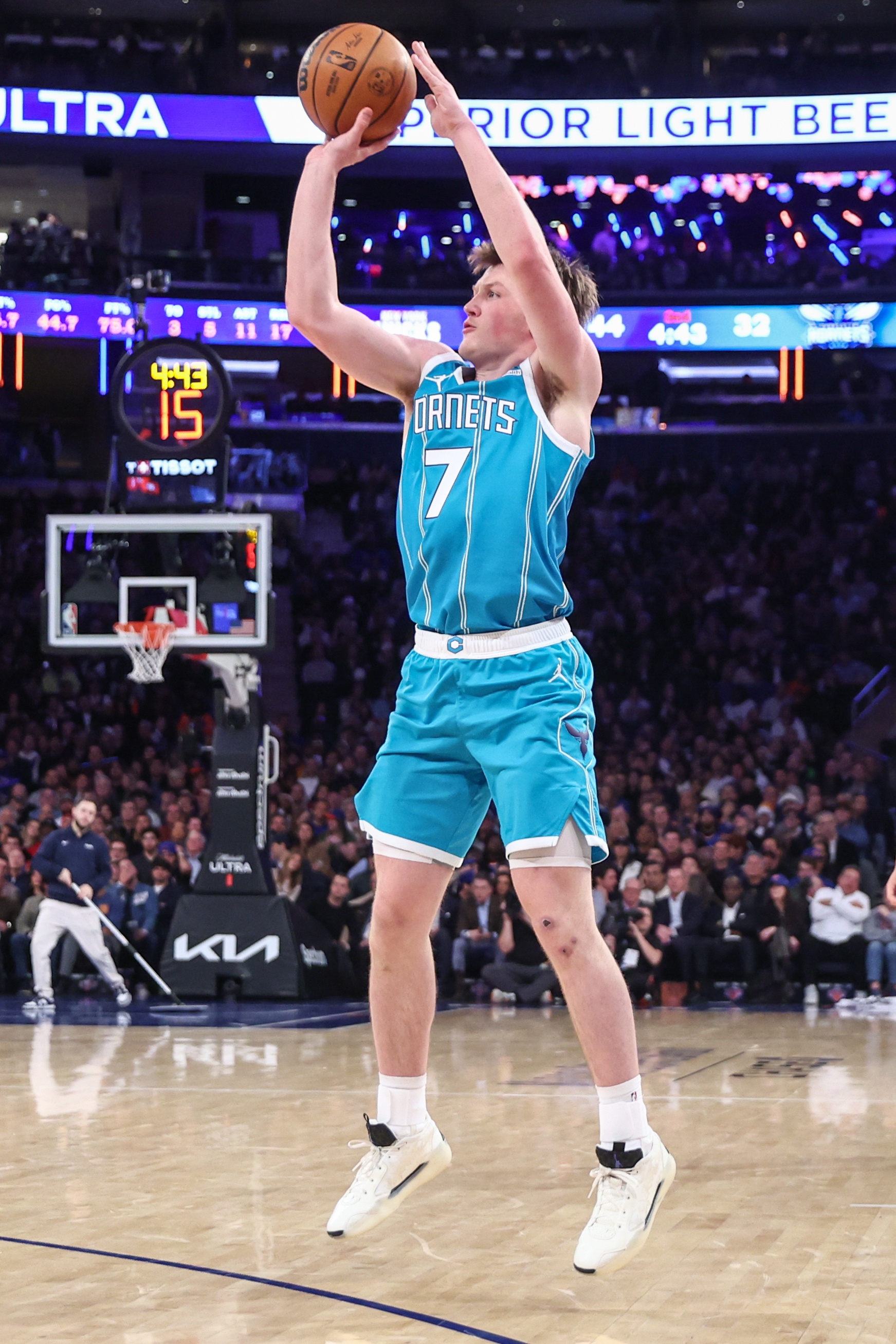 足球比分网12月13日讯 NBA常规赛,黄蜂在主场以126-129不敌公牛。 此役,布兰登·米勒出战33分钟,投篮21中8,三分7中2,得到18分4篮板5助攻1抢断2盖帽。 关键时刻,米勒连续单打不中,...