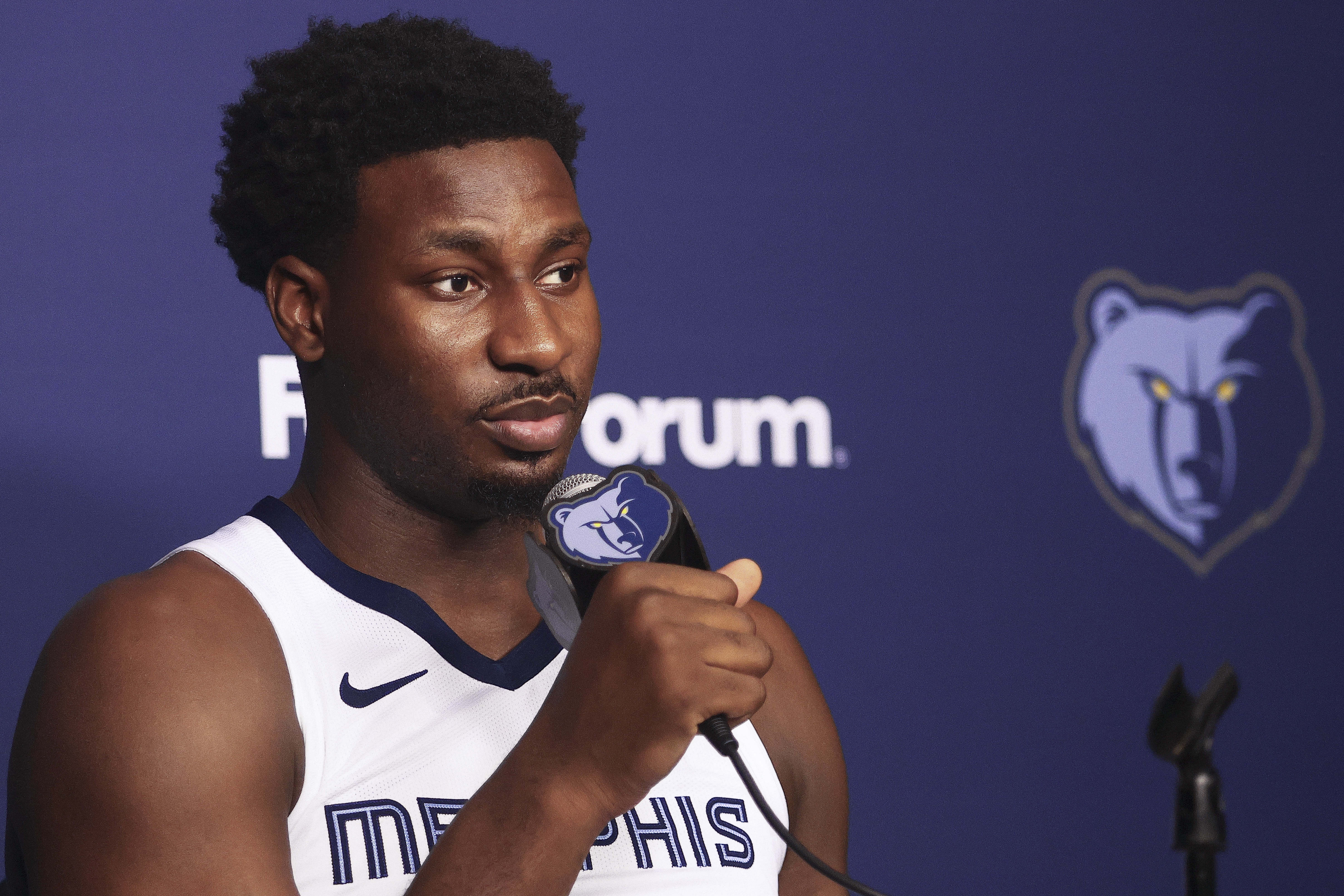 足球比分网12月13日讯 NBA常规赛,灰熊126-130惜败爵士。 本场比赛,灰熊内线小贾伦·杰克逊投篮13中6,三分球3中0,罚球2中0,拿到12分5篮板3助攻1盖帽的数据。 赛后采访,小贾伦表示:...