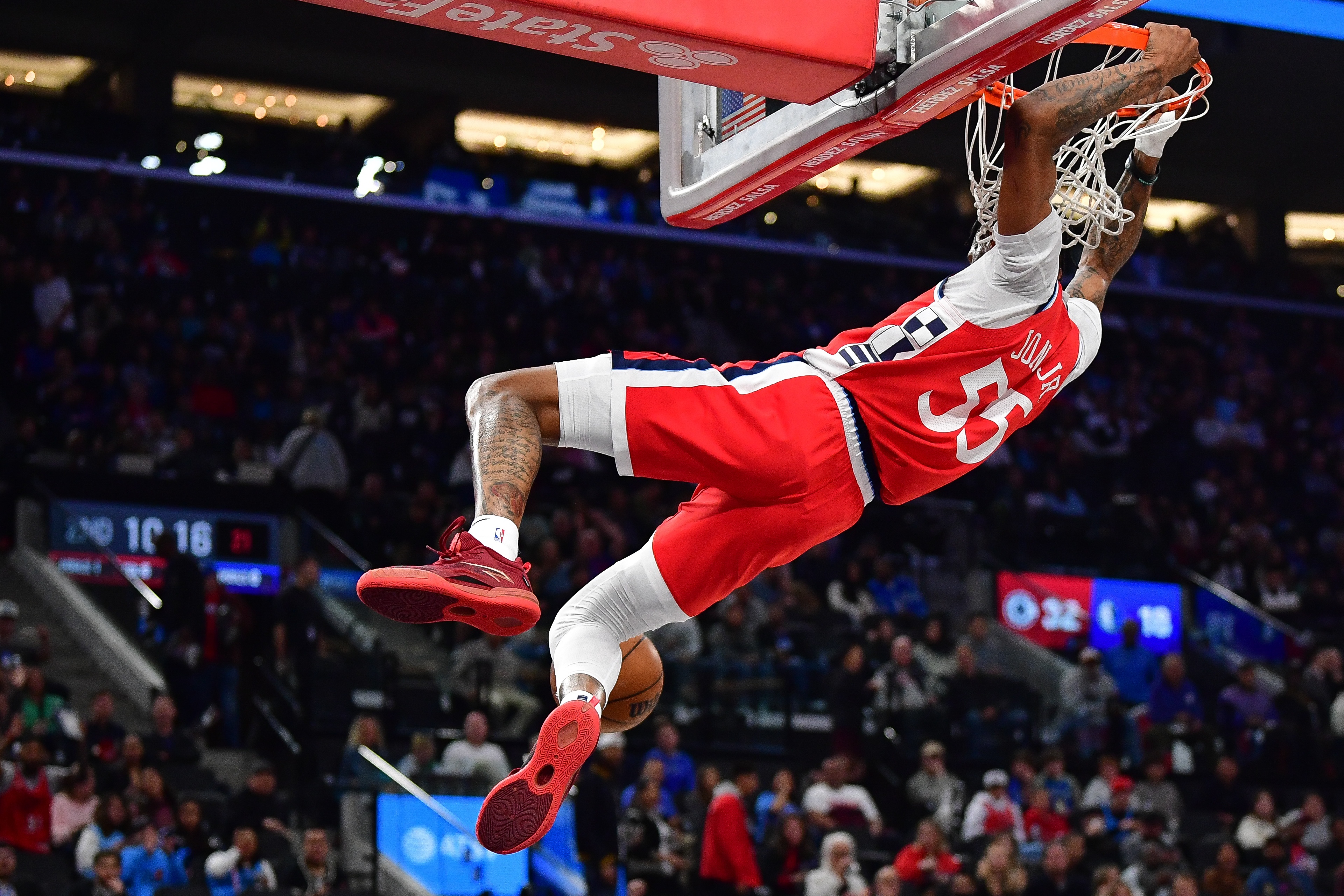 足球比分网10月25日讯 快船129-102击败太阳,赛后,本场三分5中5的快船球员小琼斯接受媒体采访。 “我只管上场打自己的球,不管裁判吹罚什么。”小琼斯说道。 小琼斯出战23分钟,投...