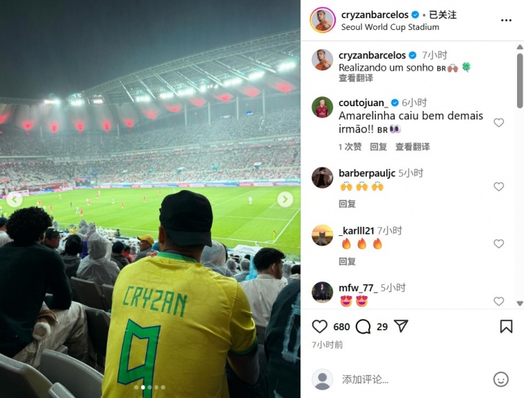 身穿自己名字的巴西9号球衣!克雷桑现场观战巴 时间: 2025-10-14 来源: 网络 作者: admin 足球比分网10月11日讯 昨日友谊赛,巴西5-0客胜韩国。此役山东泰山外援克雷桑身穿自己名字的巴西9号球衣,现场见证了巴西的大胜。 上一篇:泽卡:泰山单场赢球奖8万美元,薪资可观且按时 下一篇:阴雨浇不灭心中的火焰!卯足干劲,继续向着前