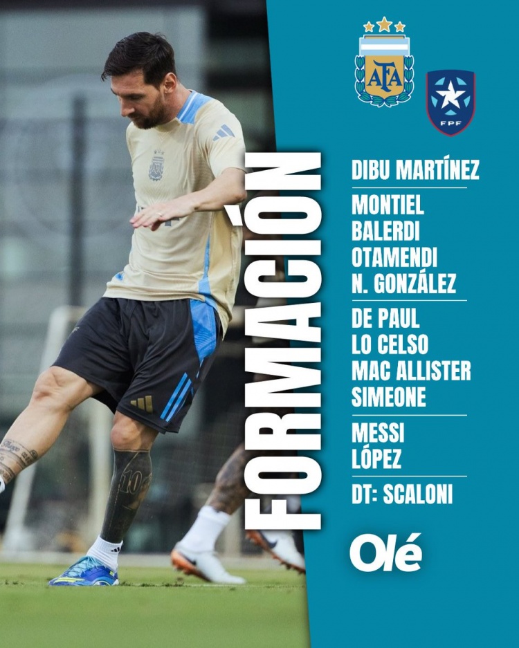 足球比分网10月14日讯 北京时间明天上午,阿根廷将在友谊赛中对阵波多黎各。阿根廷媒体《奥莱报》预测了此役阿根廷队的首发阵容,并透露如果梅西没有首发,尼科-帕斯将先发出战。 《奥莱报》预测阿根廷队首发阵容 门将:马丁内斯 后卫:蒙铁尔、巴列尔迪、奥塔门迪、冈萨雷斯 中场:德保罗、洛塞尔索、麦卡利斯特、朱利亚诺-西蒙尼 前锋:梅西、何塞-洛佩斯 |