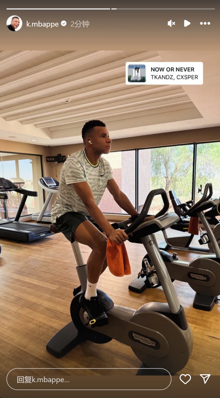 没有大碍!姆巴佩社媒晒健身房内训练照片