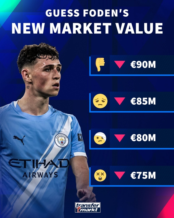 亿元先生-1!德转预热福登身价变化:必定下降,