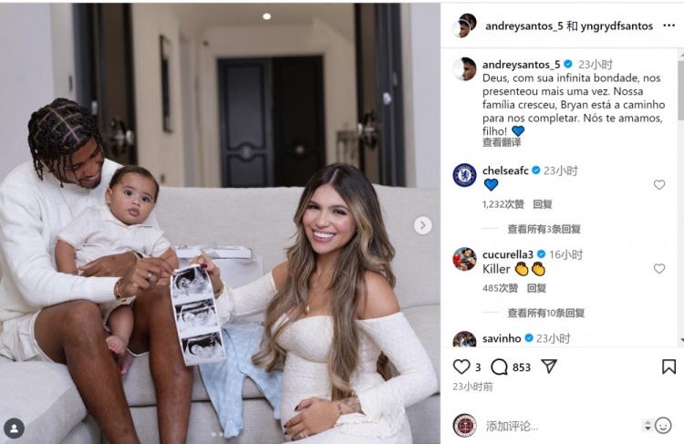 足球比分网10月17日讯 切尔西中场安德烈-桑托斯更新社媒动态,宣布妻子怀上二胎。 安德烈-桑托斯社媒晒出一家合照,宣布妻子怀上二胎,配文:“上帝以其无尽的仁慈,再次赐予我们恩典。我们的家庭将迎来新成员,布莱恩即将到来,使我们更加完整。我们爱你,孩子!” |