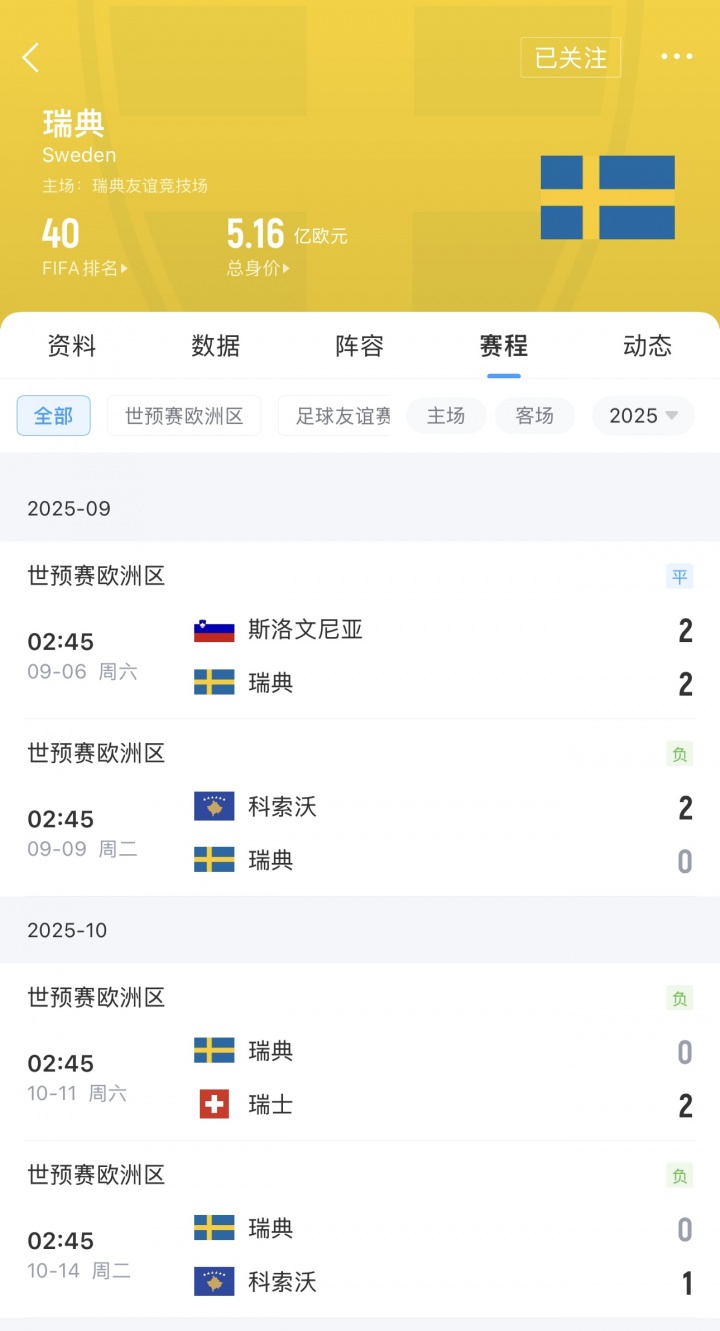 遭科索沃双杀!瑞典FIFA排名2个月狂跌11位 身价