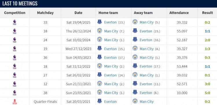 曼城vs埃弗顿战绩:近10场曼城8胜2平保持不败,