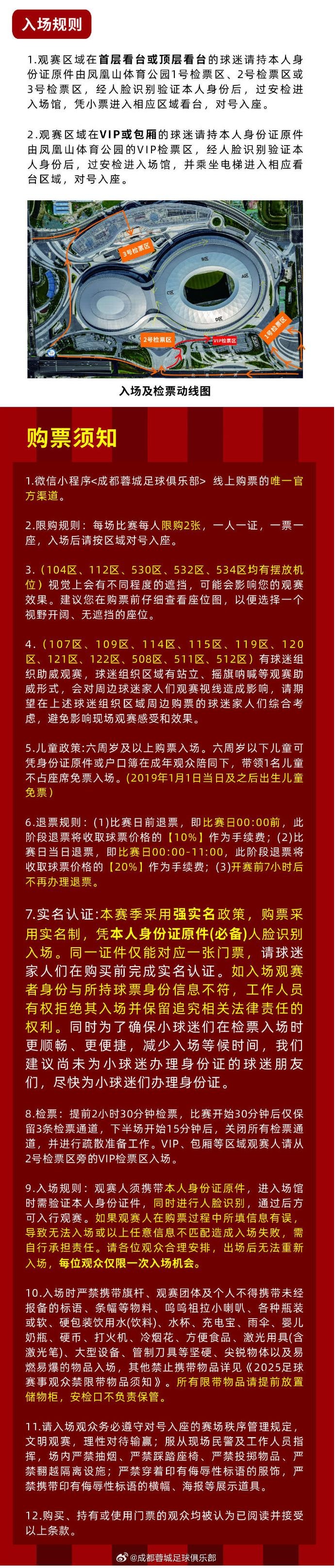 今日14:00,成都蓉城vs柔佛DT主场比赛球票线上开售,请各位球迷家人定好闹钟!线上购票相关购买须知、优惠群体政策、进场及检票方式等信息请通过图片详情了解。