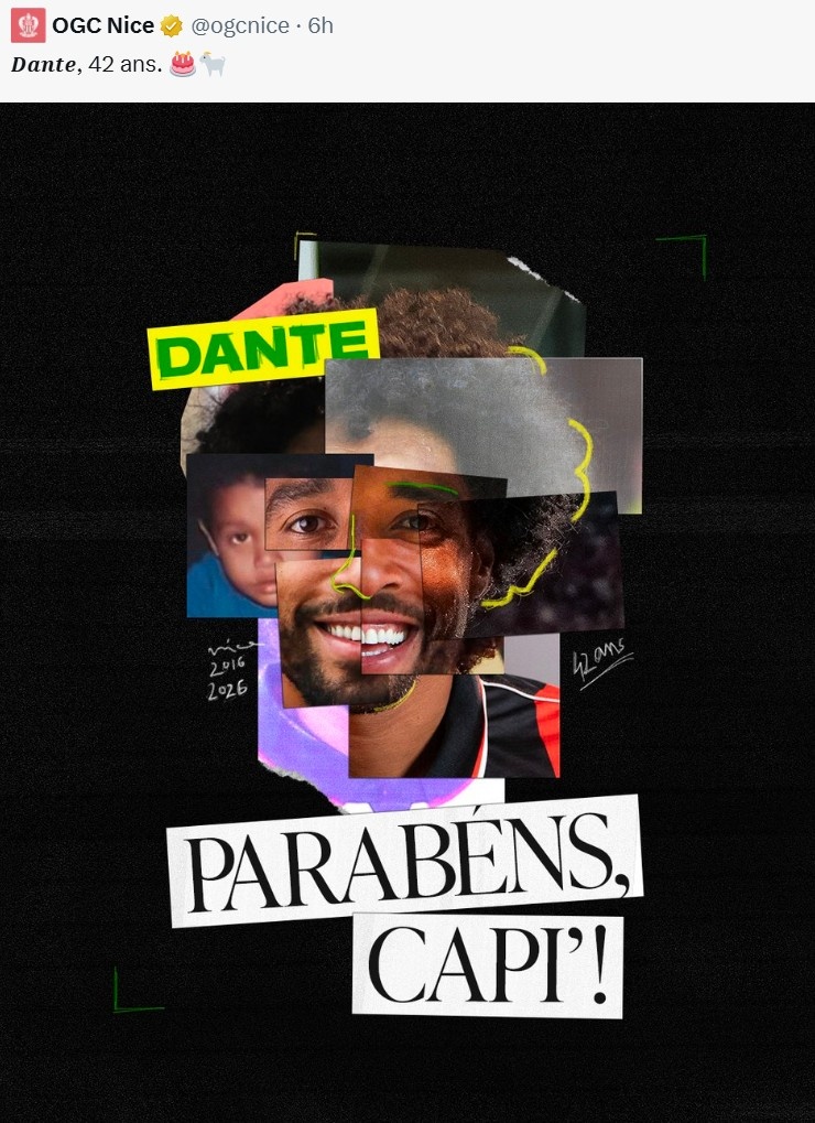 42岁生日的丹特为尼斯首发,是法甲自47/48赛季第
