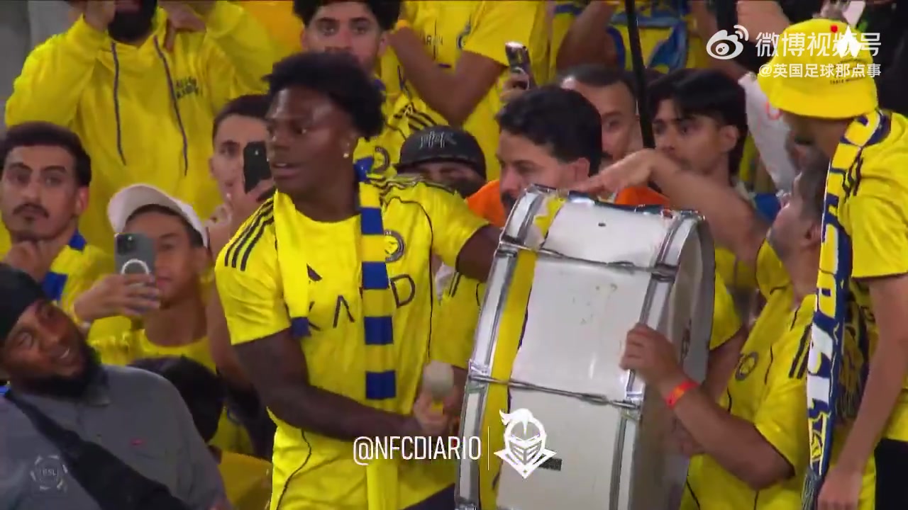 利雅得胜利5-1哈萨征服赛后,C罗走到Speed面前,教他如何带领球迷庆祝。Speed高兴坏了,热情一下被点燃,激动的和身边人拥抱,又带领球迷呐喊 |