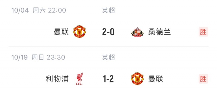 足球比分网10月20日讯 英超双红会,曼联2-1客胜利物浦。 曼联本赛季开局赛程艰难,但他们主场2-1拿下切尔西,今天又客胜利物浦,前八轮取得4胜1平3负的战绩,暂以13分排名第九、只落后前四2分。 曼联英超战绩: