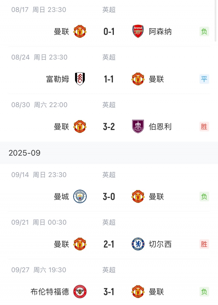 打几分?曼联魔鬼赛程4胜1平3负只落后前四2分,