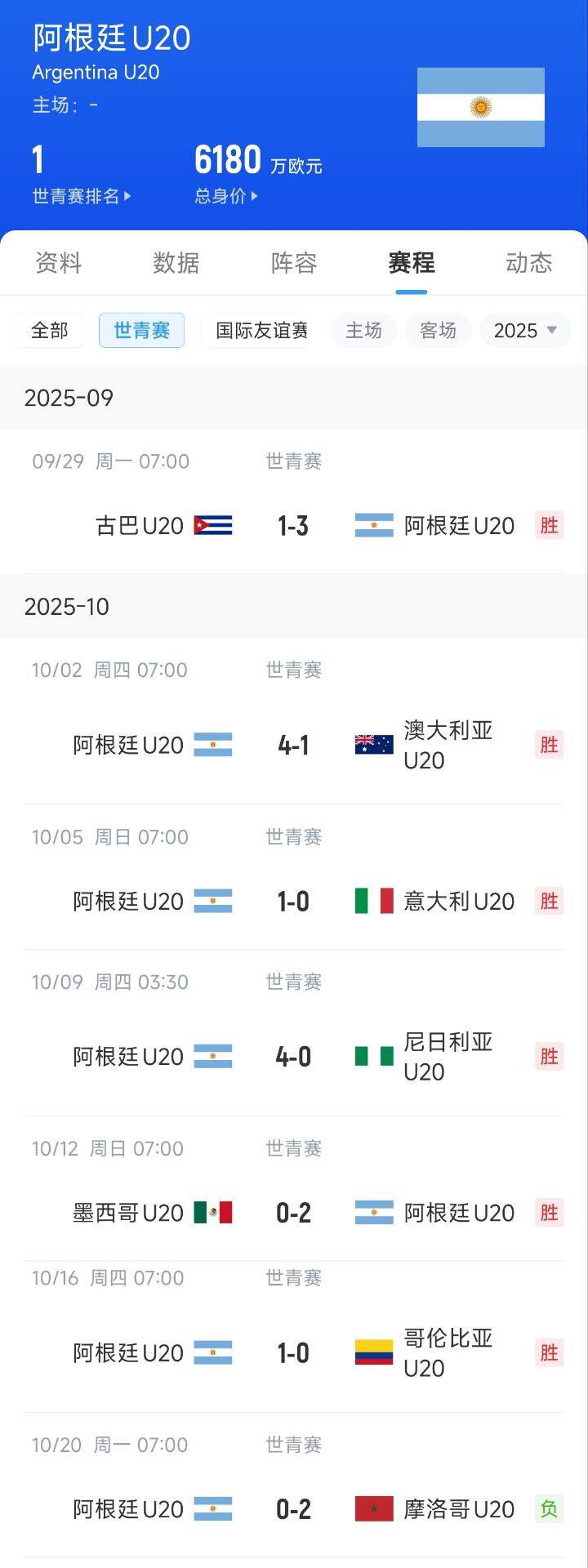 足球比分网10月20日讯 世青赛决赛,阿根廷U20队0-2不敌摩洛哥U20,遗憾无缘冠军。 本届世青赛,阿根廷保持全胜战绩晋级决赛,6场狂轰15球仅丢2球,其中淘汰赛0失球!但是最终决赛遭零封+丢2球。
