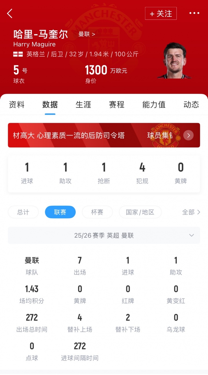 足球比分网10月20日讯 本轮双红会曼联2-1战胜利物浦,马奎尔头球破门制胜,赛后他接受采访时表示这可能是最后一次代表球队在安菲尔德踢球。BBC撰文谈到了马奎尔的未来。 报道称,马奎尔的合同将在本赛季末到期,据了解他和他的家人都定居在西北部,球员渴望留在老特拉福德,并愿意为此降薪。但到目前为止,双方尚未就新合同达成一致。 而据此前太阳报报道,由于曼联未能在2024年5月获得欧冠资格,马奎尔的薪水已经减少了25%,目前他的周薪约为14万镑。