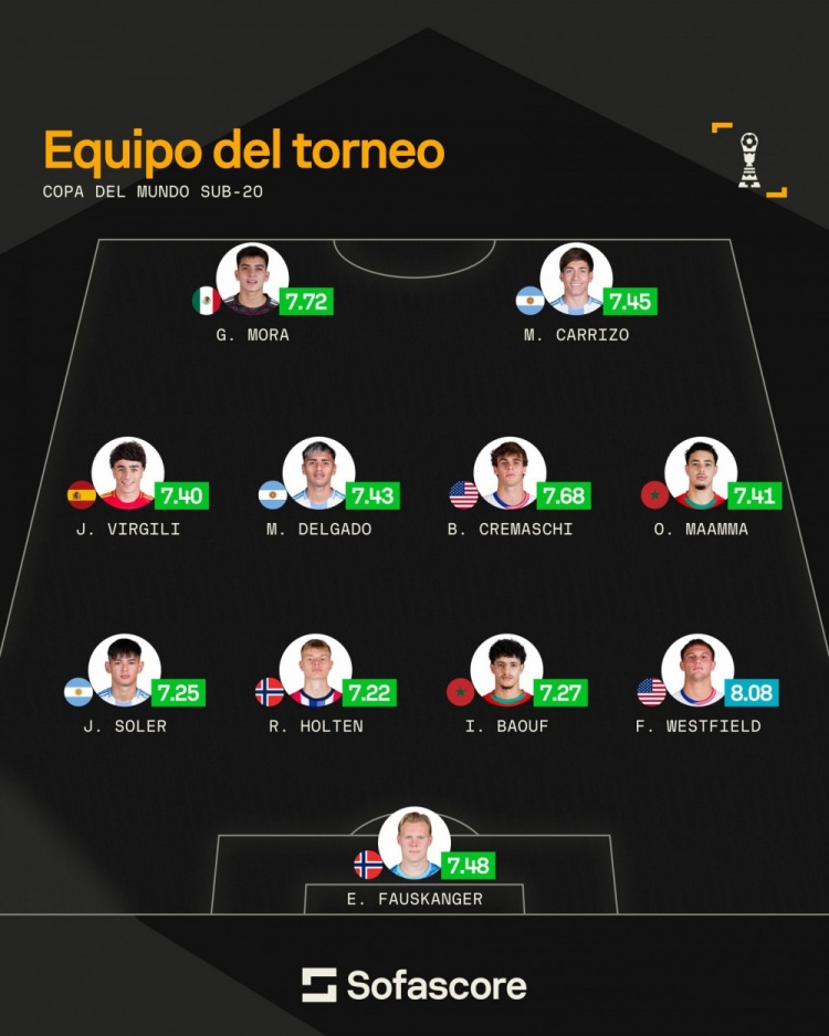 Sofascore世青赛最佳阵:玛玛领衔摩洛哥2将入选,