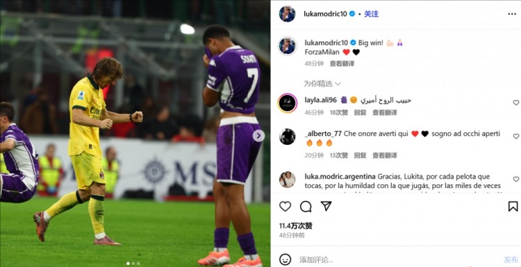 胜利+榜首!莫德里奇社媒庆祝:伟大的胜利!