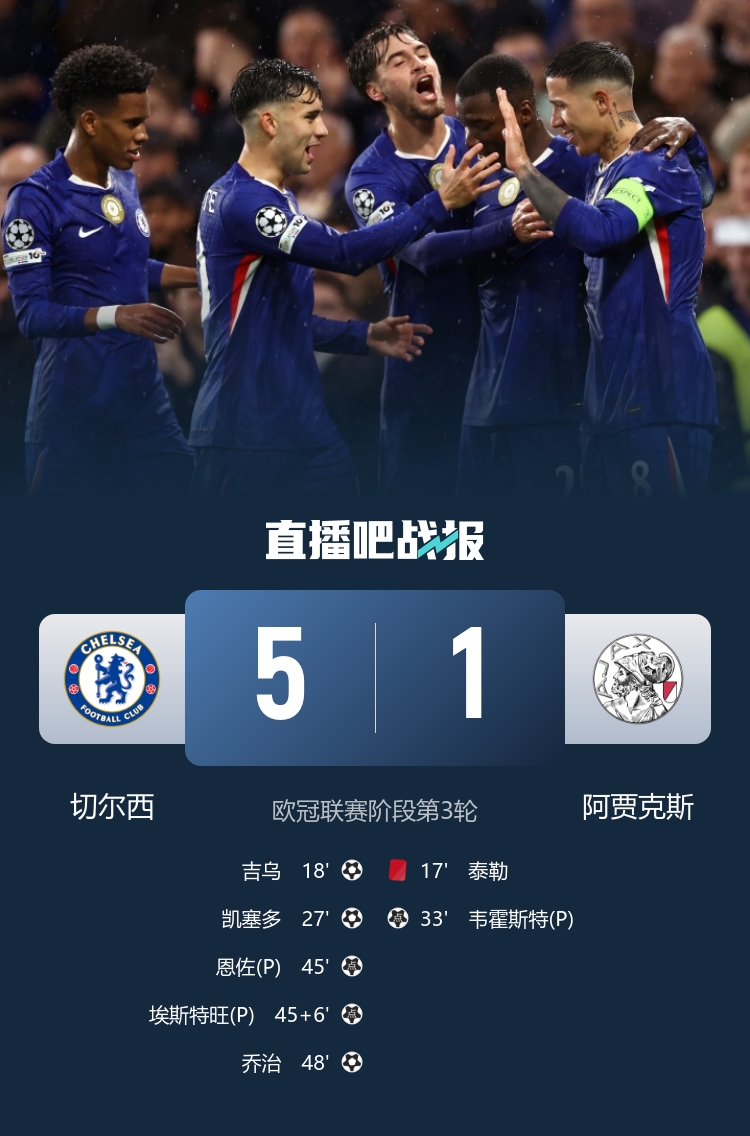 足球比分网10月23日讯 欧冠联赛阶段第3轮,英超6队不败,仅热刺未能赢球。 英超球队本轮欧冠战绩: 阿森纳4-0马竞 曼城2-0比利亚雷亚尔 纽卡3-0本菲卡 切尔西5-1阿贾克斯 利物浦5-1法兰克福 热刺0-0摩纳哥