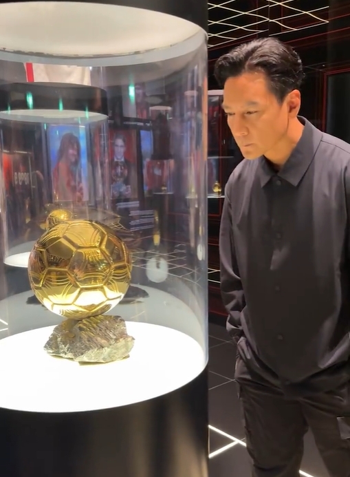 米兰官博晒视频:吴彦祖参观奖杯,面对镜头说