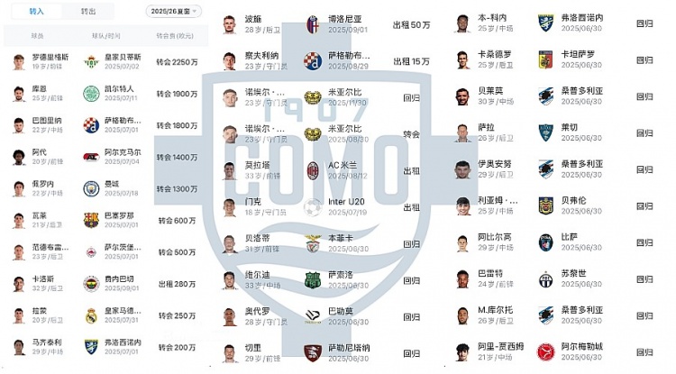 上赛季,科莫时隔多年后重返顶级联赛舞台,他们投入9770万欧元引援,不仅早早完成了保级任务,最终的排名还停留在了意甲积分榜上半区(第10名)。小试牛刀便收获意外之喜,科莫在2025夏窗继续加大引援力度,他们破费1.0765亿欧元引进了16名球员,净支出(9400万欧元)高居意甲诸强首位。