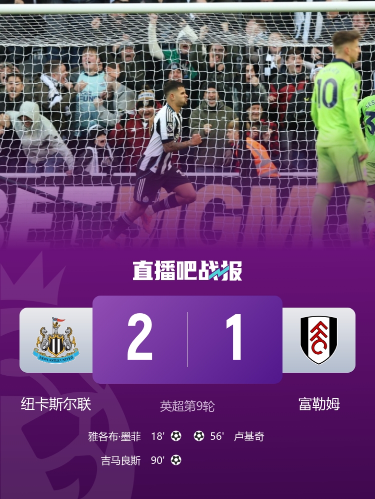 桑德兰先赛升第二,切尔西各项赛事四连胜终结!塔尔比第93分钟替补绝杀。 绝杀!纽卡2-1富勒姆 墨菲破门+中柱+失单刀吉马良斯推射制胜