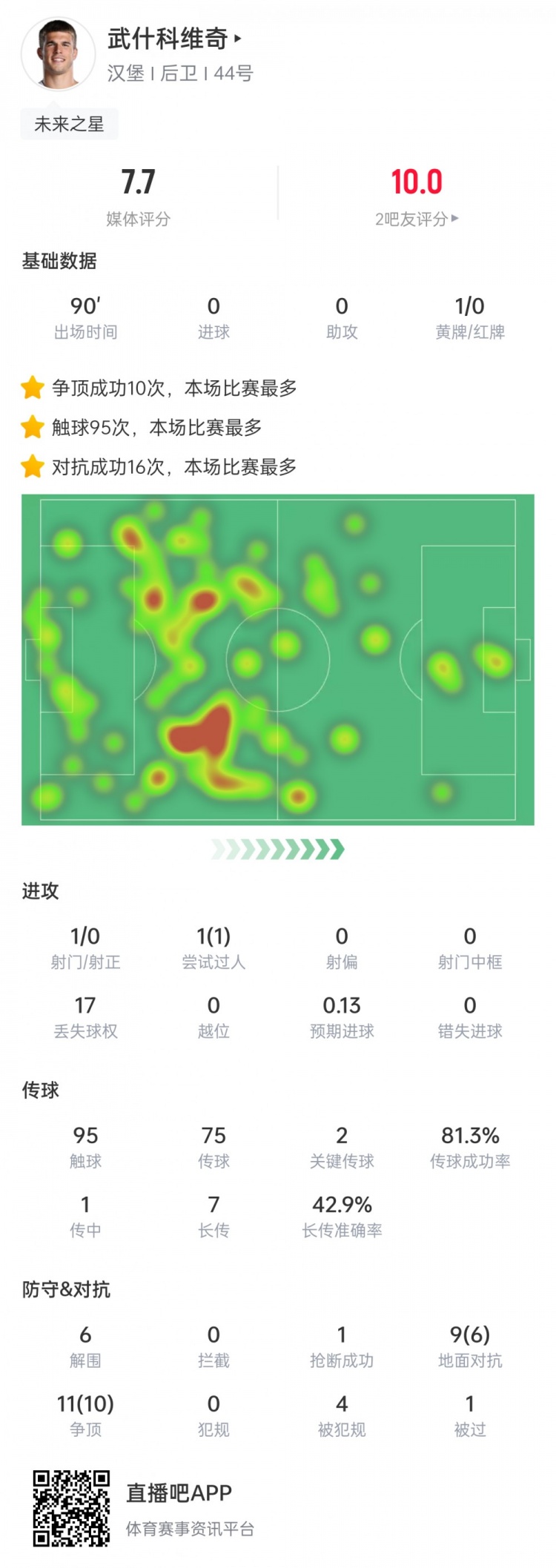 未来可期!武什科维奇本赛季2场联赛争顶成功