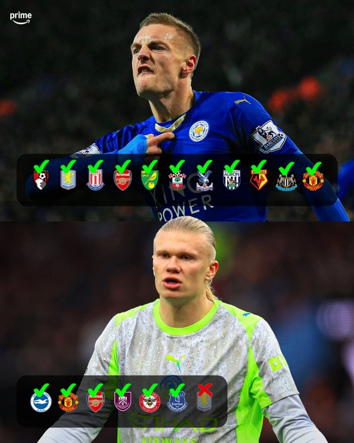 足球比分网10月28日讯 英超第9轮,曼城客场0-1不敌维拉。哈兰德未能破门,各项赛事连续12场、英超连续6轮进球纪录遭终结。 这样一来,英超历史连续最多轮进球的纪录仍然是哈兰德不可企及的目标,这一纪录由瓦尔迪效力莱斯特城期间创造。 2015年8月29日-11月28日期间,瓦尔迪在英超连续11轮进球,至今仍是英超联赛最长的连续进球场次纪录。 |