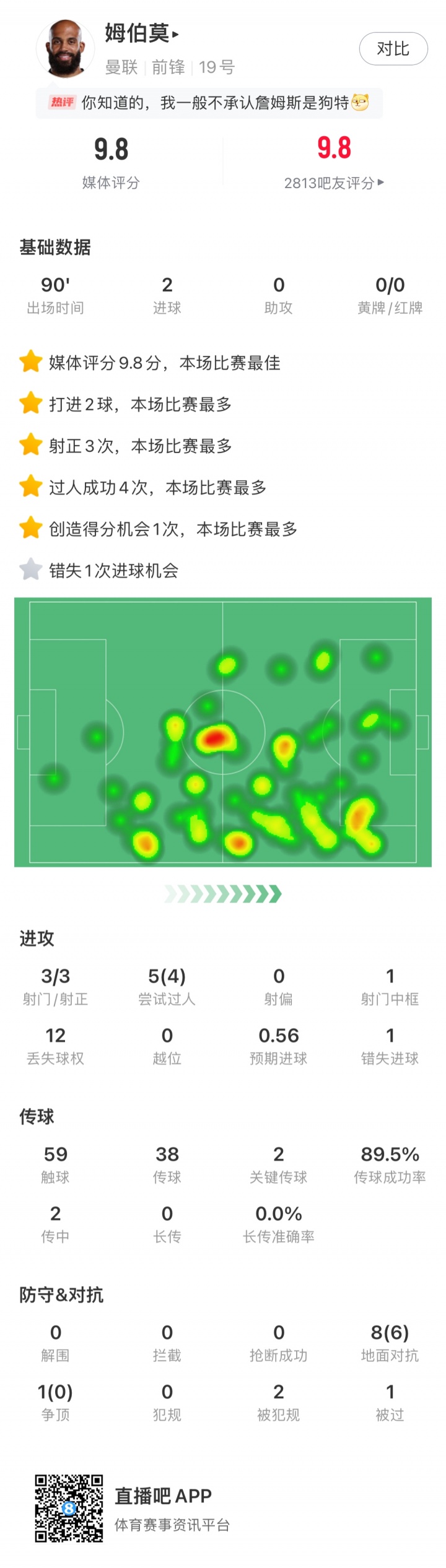 直播吧X咪咕体育|英超第9轮最佳:姆伯莫当选 曼