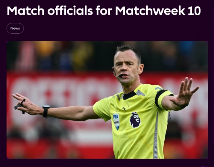 英超第10轮裁判:吉莱特执法热刺vs切尔西 阿特维
