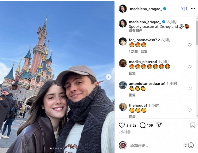 般配!女友社媒晒与内维斯共游迪士尼乐园照片