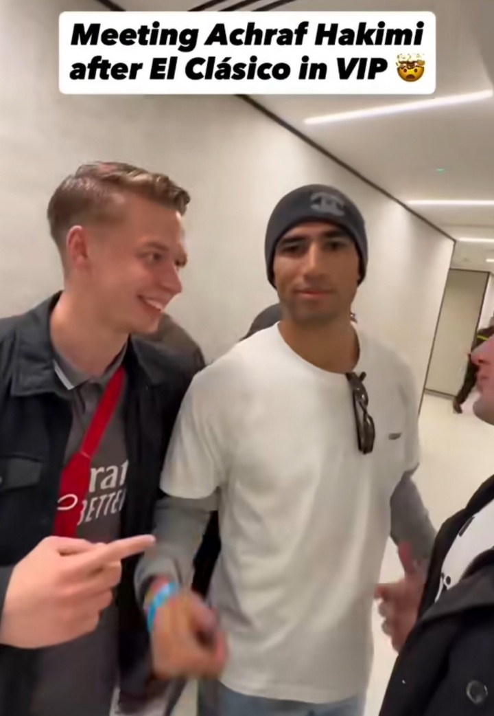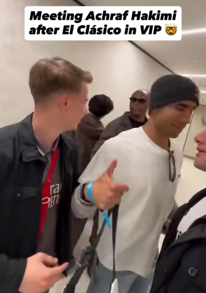 足球比分网10月27日讯 西甲第10轮,皇马主场2-1击败巴萨,姆巴佩破门。 赛后有球迷晒照,称自己在伯纳乌的VIP包厢偶遇阿什拉夫,并合影留念。