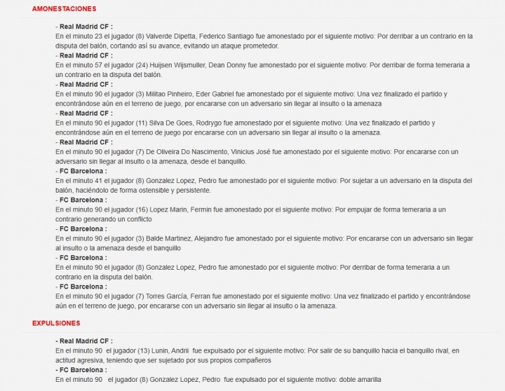 官方裁判报告中记录了这次冲突的裁判判罚。 亚马尔父亲更新社媒:幸好他只有18岁,巴塞罗那再见