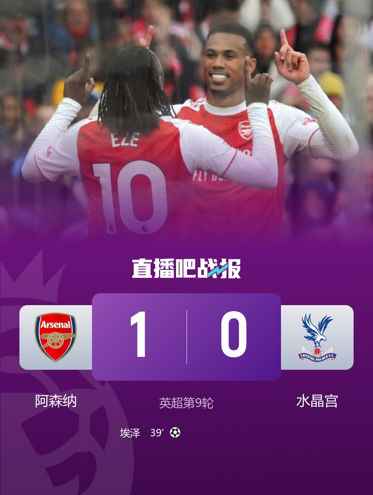 英超联赛第9轮,阿森纳1-0战胜水晶宫,埃泽弑旧主。 3连胜终结!曼城0-1维拉 哈兰德失单刀连续12场进球中断 卡什制胜
