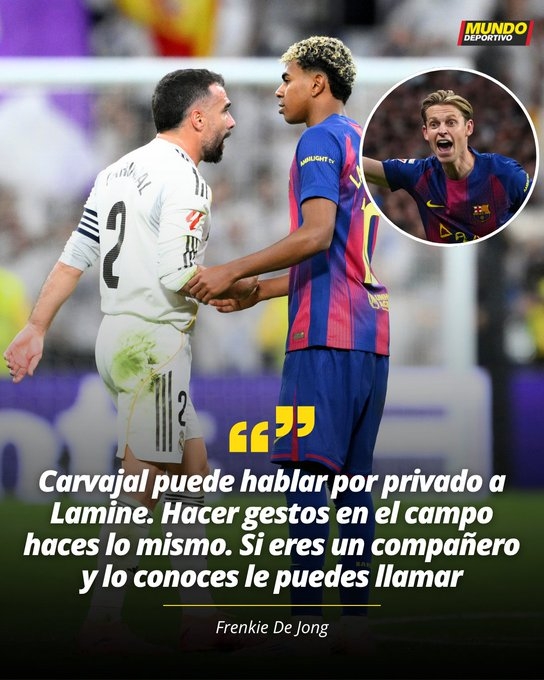 赛后阿隆索接受了皇马电视台的采访。 德容谈冲突:卡瓦哈尔可以私下和亚马尔谈,而不是在场上做手势