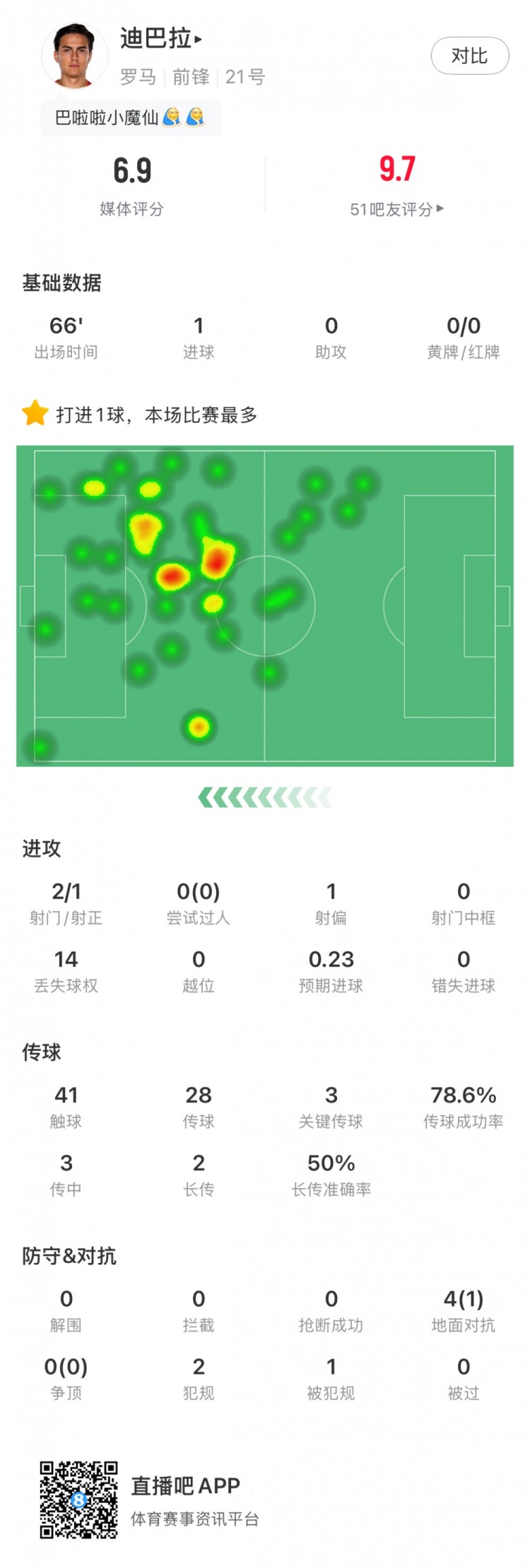 打进制胜球,迪巴拉当选罗马1-0客胜萨索洛全场