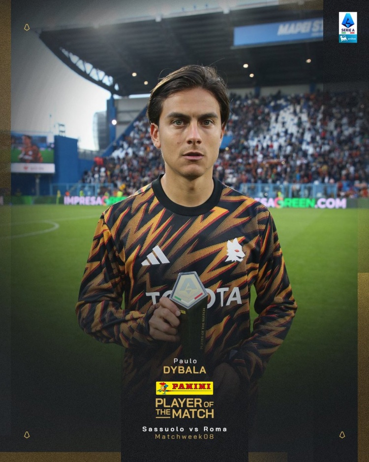 足球比分网10月27日讯 意甲第8轮,罗马客场1-0击败萨索洛。 迪巴拉此役为罗马打进制胜进球,赛后他也被意甲官方评为全场最佳球员。 迪巴拉此役为罗马首发出战66分钟,打进1球,同时还送出3记关键传球。