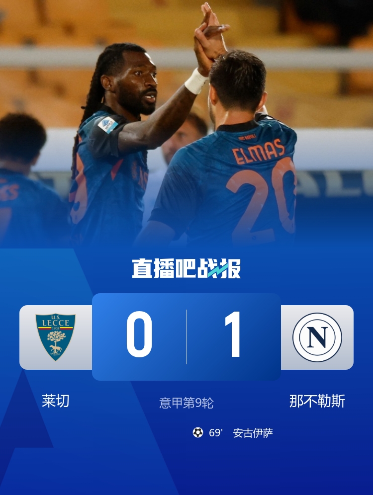 安古伊萨制胜,瓦尼亚扑点,那不勒斯客场1-0战胜莱切取得两连胜。 德国杯-多特点球5-3法兰克福晋级第三轮 布兰特破门堂安律失点