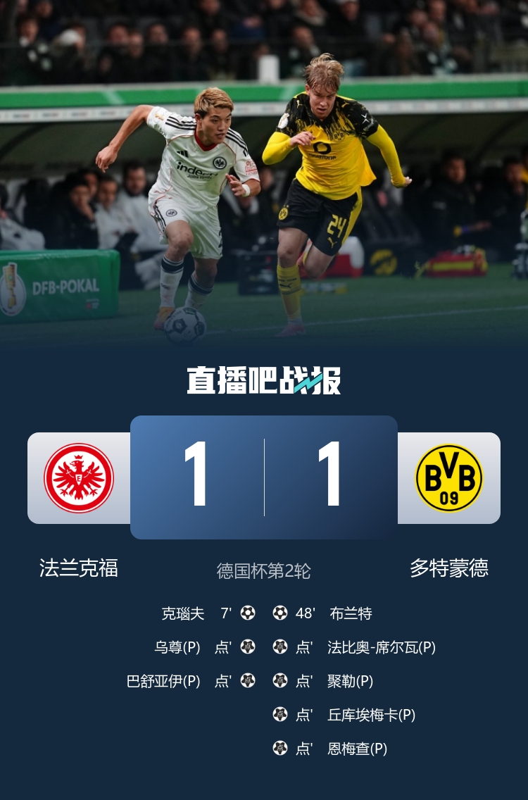 布兰特破门,多特点球大战5比3法兰克福晋级第三轮。 无缘晋级!中国U17女足0-3不敌巴西 止步U17女足世界杯16强