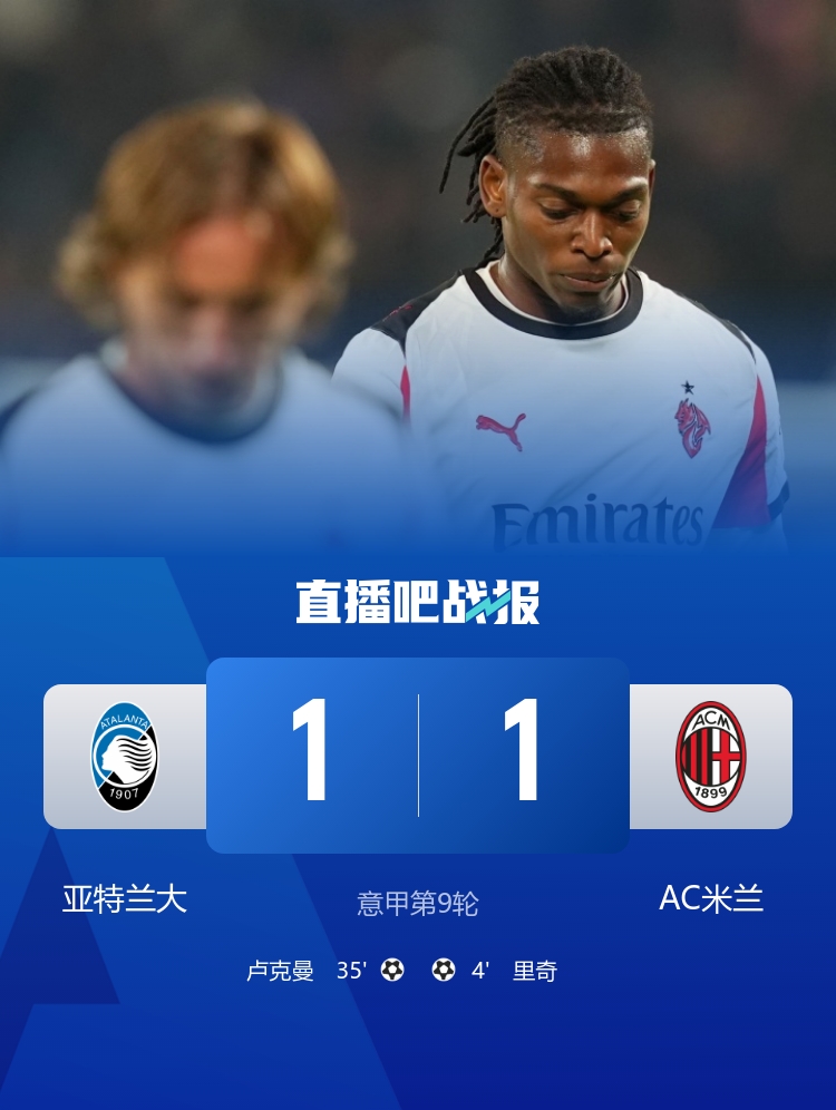 【战报新闻】 两连平!米兰1-1亚特兰大距榜首3分 里奇远射破门莱奥半场伤退