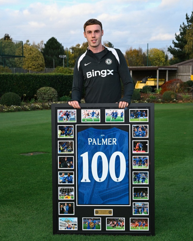 俱乐部百次出场,切尔西为帕尔默等五名球员颁