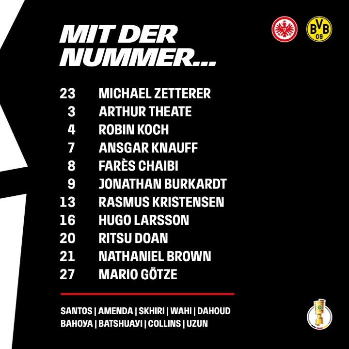 德国杯法鹰vs多特首发:堂安律、格策先发,小贝